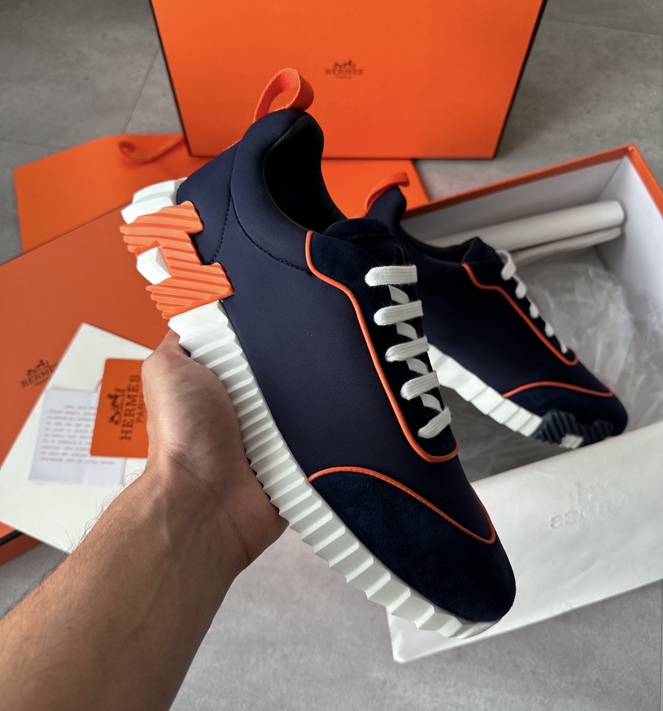 Hermès Bouncing Sneakers Blue Orange Lines